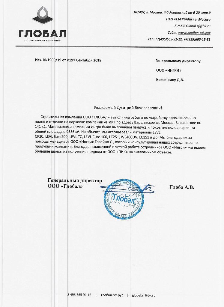 Генеральный директор ООО "Глобал" Глоба А.В.